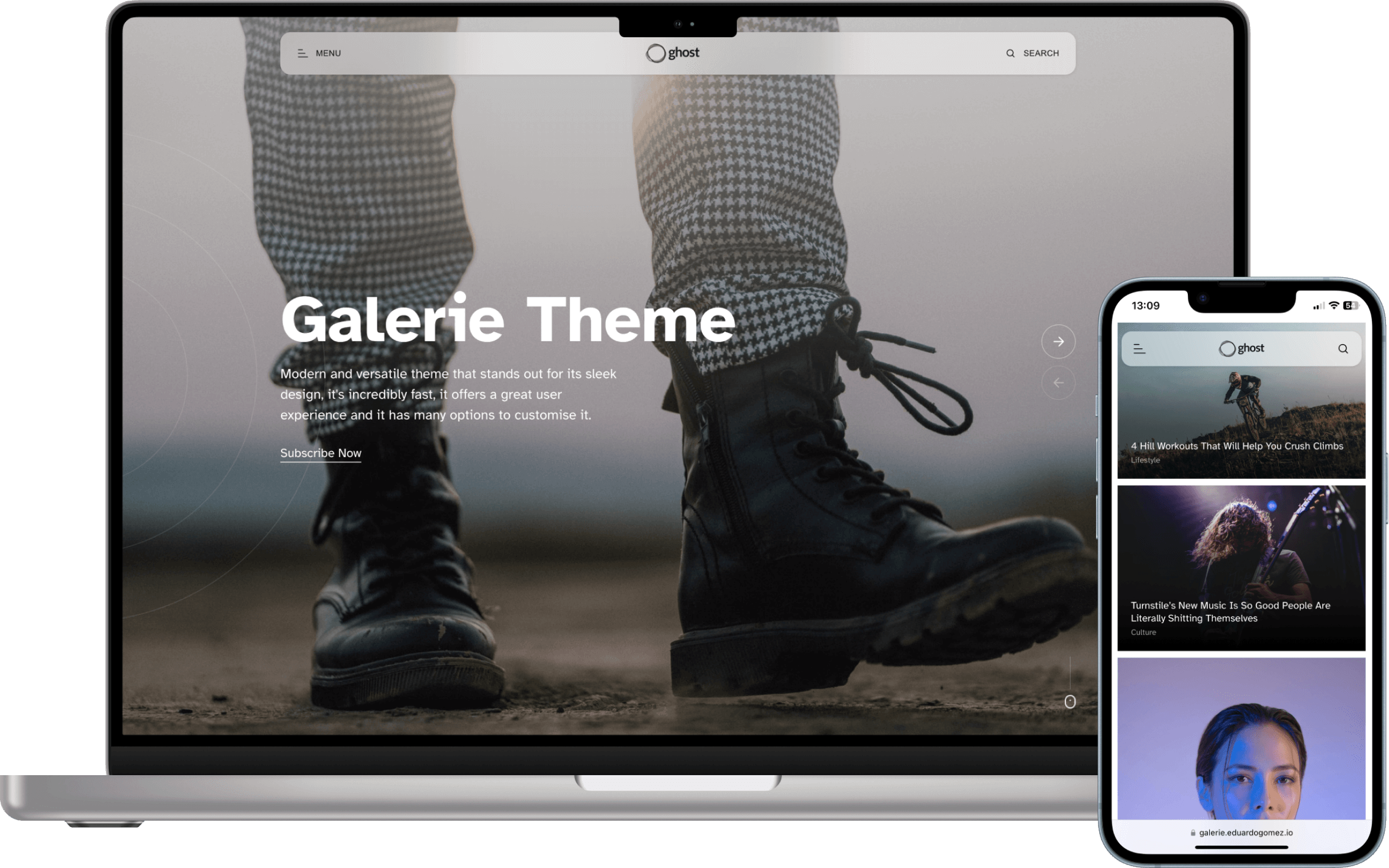Galerie's responsive design allows it to adapt correctly to any device, no matter the size or aspect ratio, the content and images are always displayed correctly.