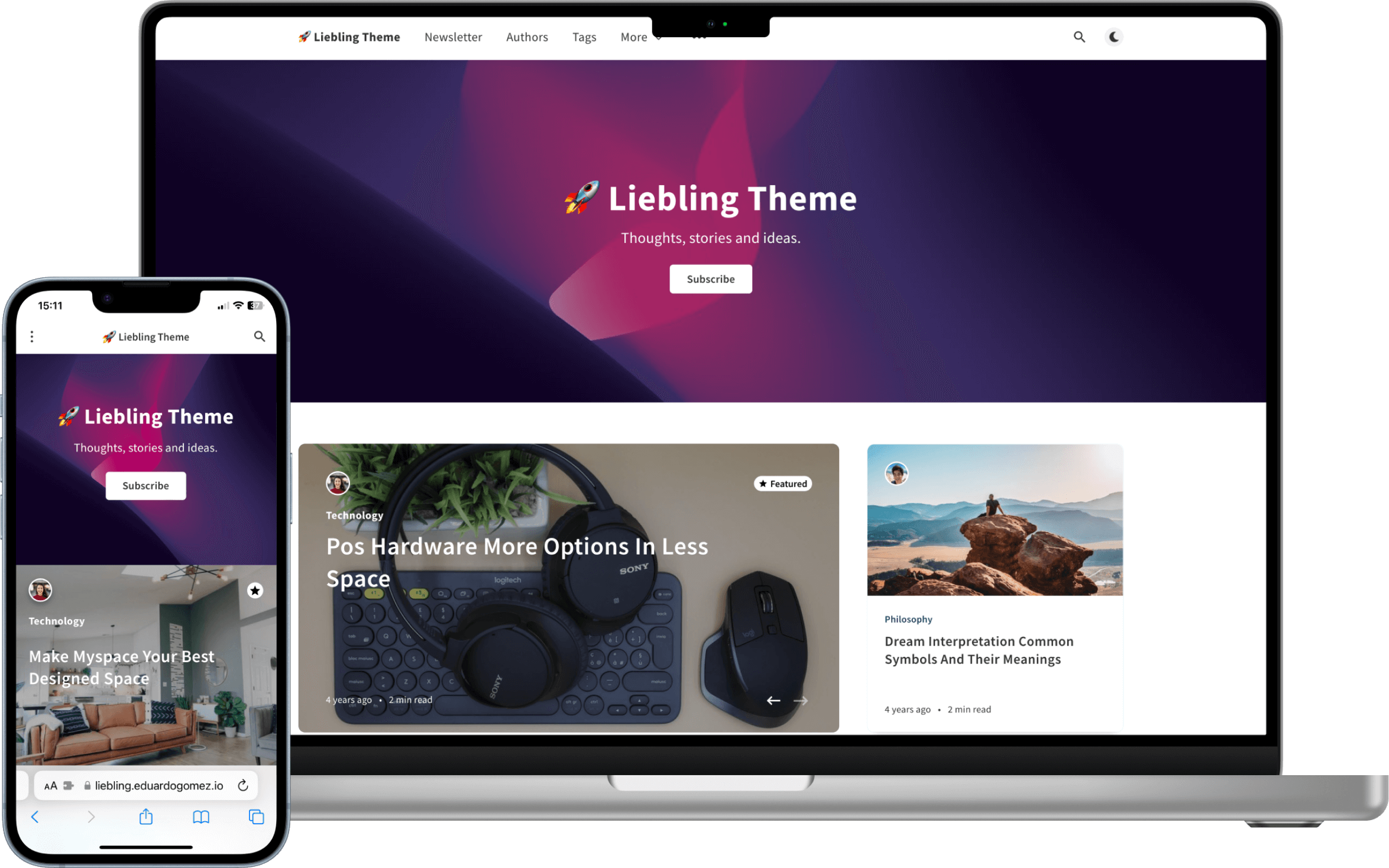 During all this time I have learned a lot about theme development for Ghost and Liebling has been a very important part of it because it was the base that allowed me to create premium themes that I have been able to sell and that fortunately are used by many people.
